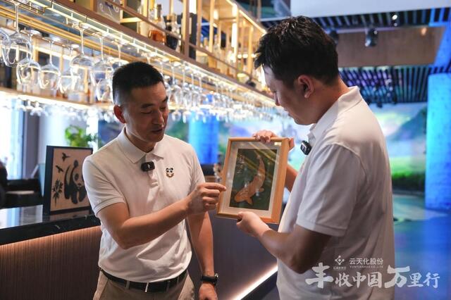 图:雅安市雨城区文化广播电视体育和旅游局党组书记、局长徐勇(左一)介绍雅鱼文创